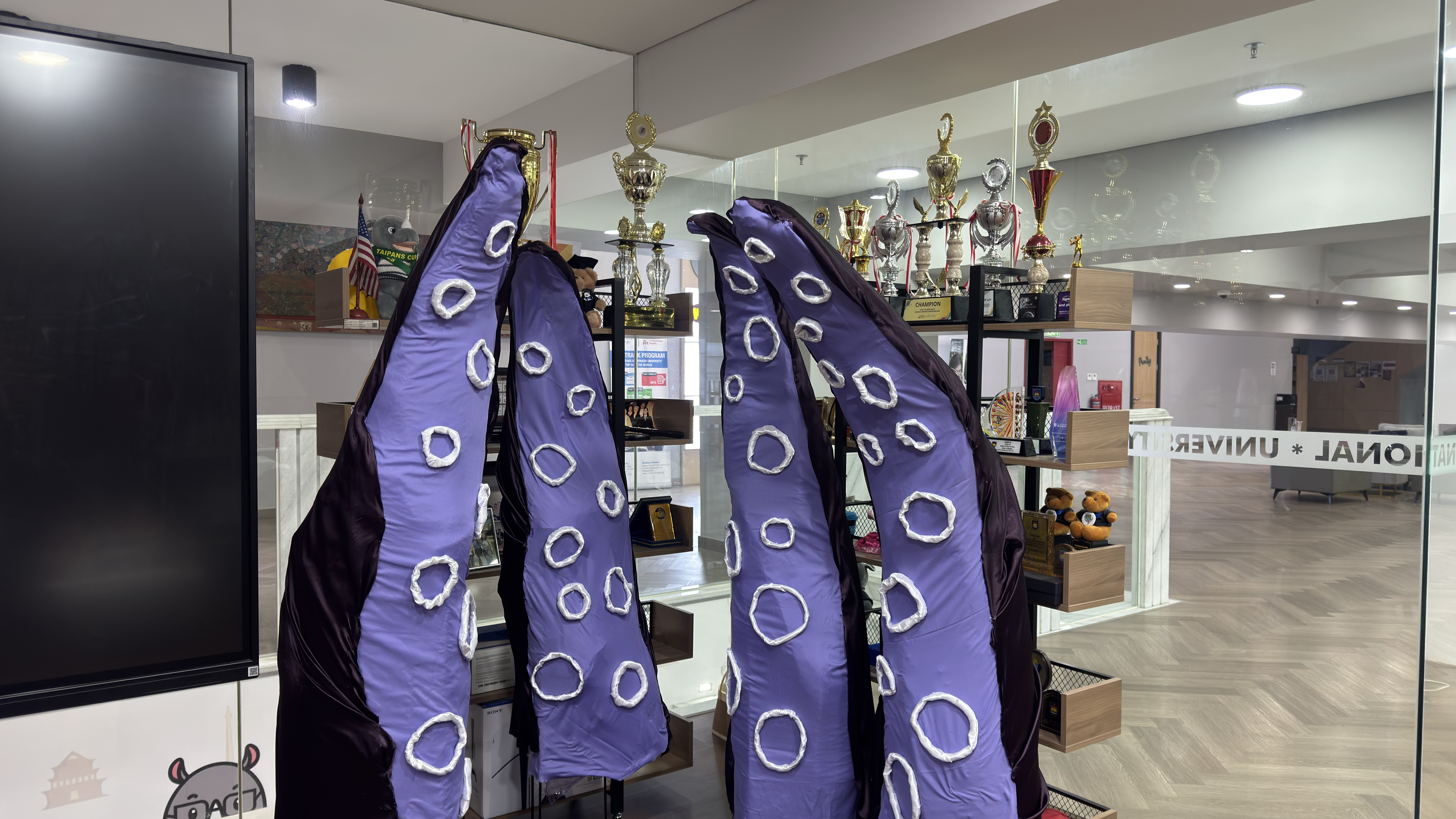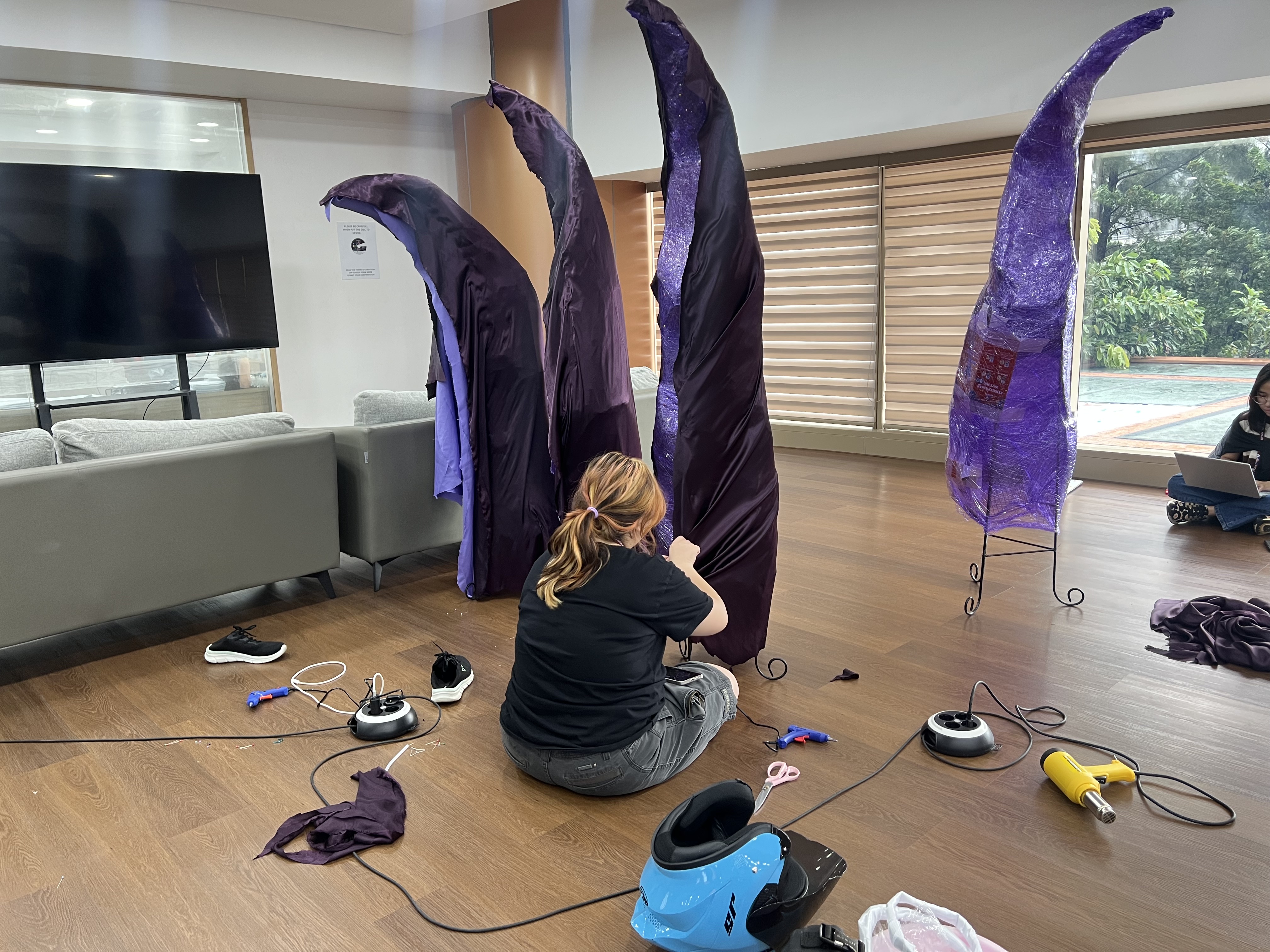For the past few days, groups of super enthusiastic students have been rolling up their sleeves, working together in both indoor and basement spaces to create Halloween-themed decorations. From building giant purple tentacles to crafting eerie sculptures and props, every piece is being lovingly handmade with teamwork, creativity, and a good dose of spooky spirit.
